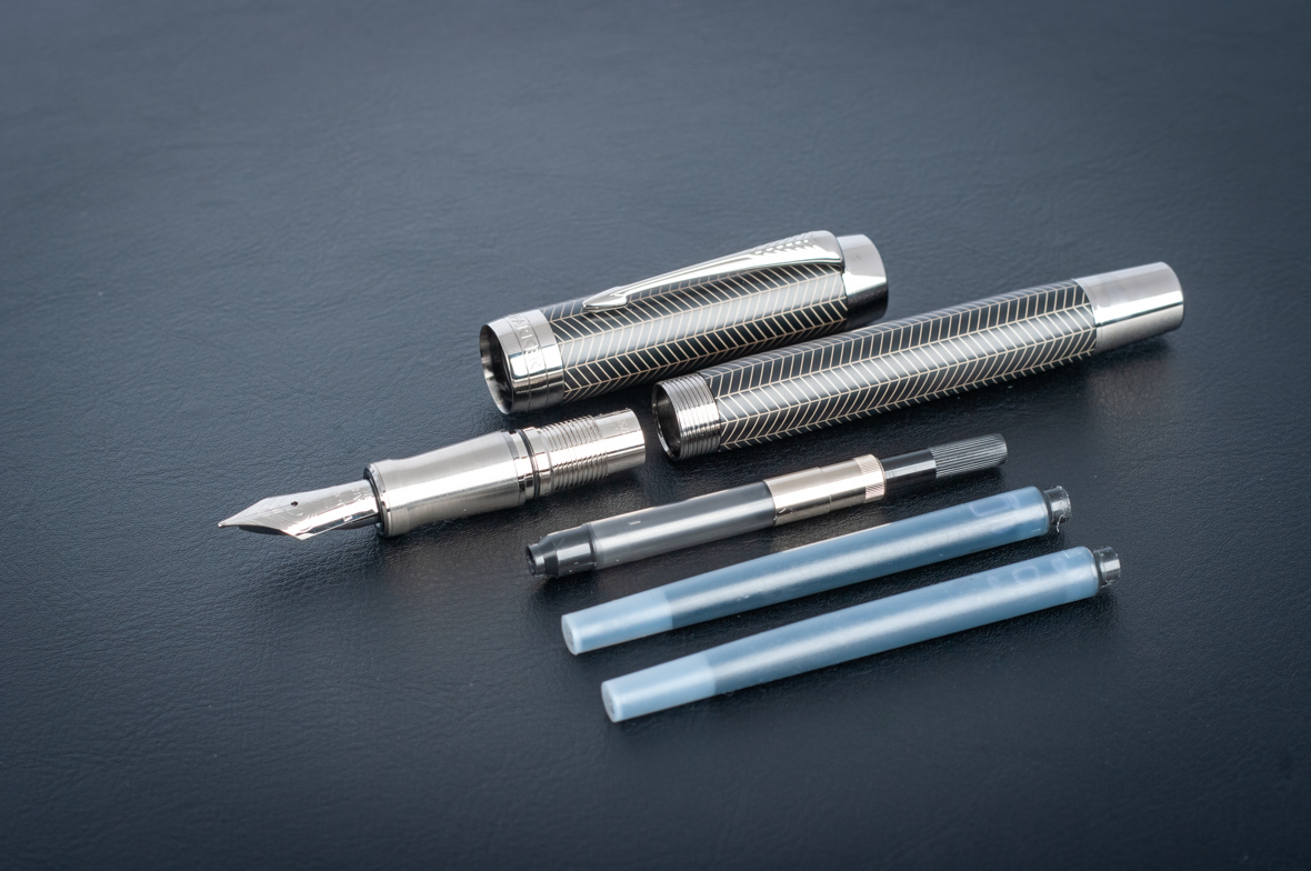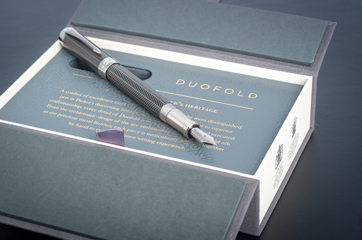 Перьевая ручка Parker Duofold Prestige Centennial Black Chevron CT от официального дилера Parker в Южно-Сахалинске. Вы можете дополнительно заказать гравировку, которая подчеркнет Вашу оригинальность и придаст памятность статусному подарку. Все ручки Паркер поставляются в фирменном футляре.
